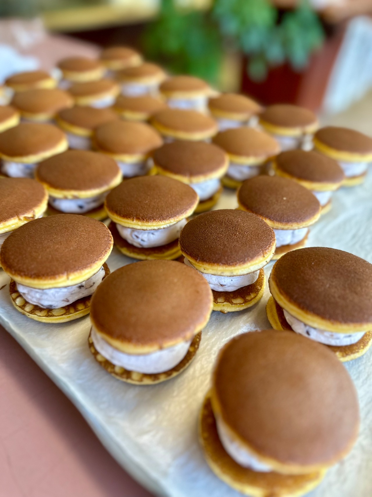 ひとつひとつ手焼きしたどら焼きに、生クリームと希少な「能登大納言かのこ」を使用した風味豊かでふっくらとした粒あんをサンドしました。